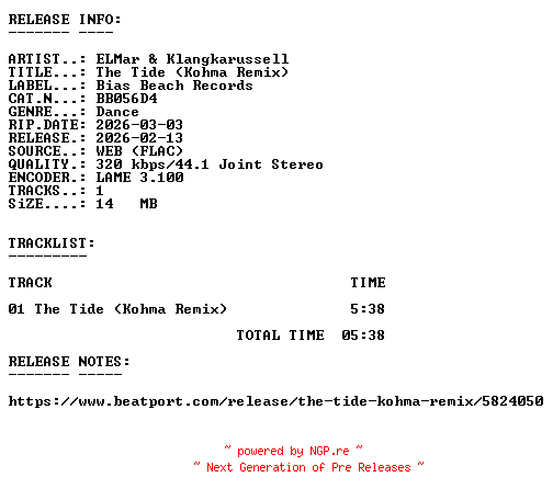 Titel: ELMar_and_Klangkarussell_-_The_Tide_(Kohma_Remix)-(BB056D4)-SINGLE-WEB