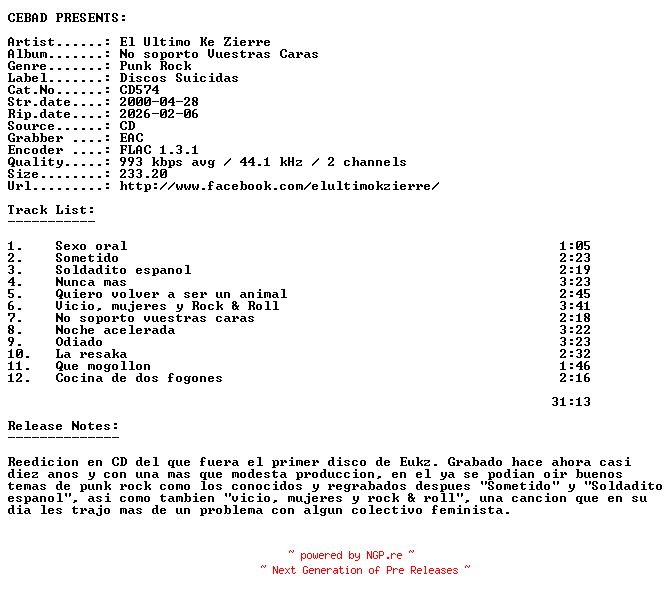 Titel: El_Ultimo_Ke_Zierre-No_Soporto_Vuestras_Caras-(CD574)-ES-REISSUE-CD-FLAC