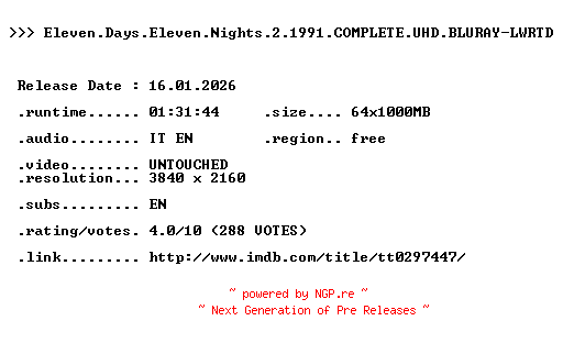 Eleven.Days.Eleven.Nights.2.1991.COMPLETE.UHD.BLURAY-LWRTD