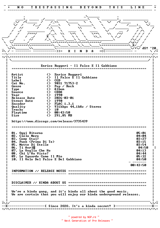 87917113 | FLAC | KINDA | italian/singer-songwriter/singer-songwriter | 01.03.2026 22:00