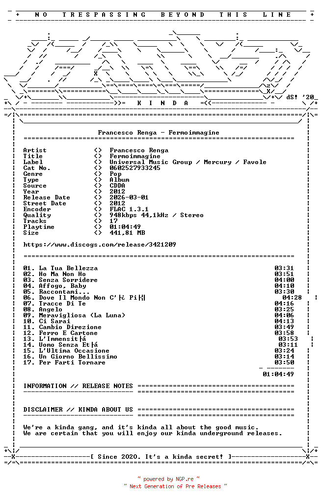 87917137 | FLAC | KINDA | italian/singer-songwriter | 01.03.2026 22:00