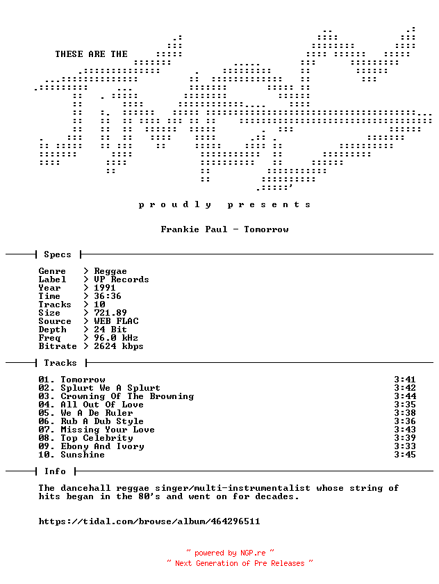 Titel: Frankie_Paul-Tomorrow-24BIT-96KHZ-WEB-FLAC-1991-TiMES