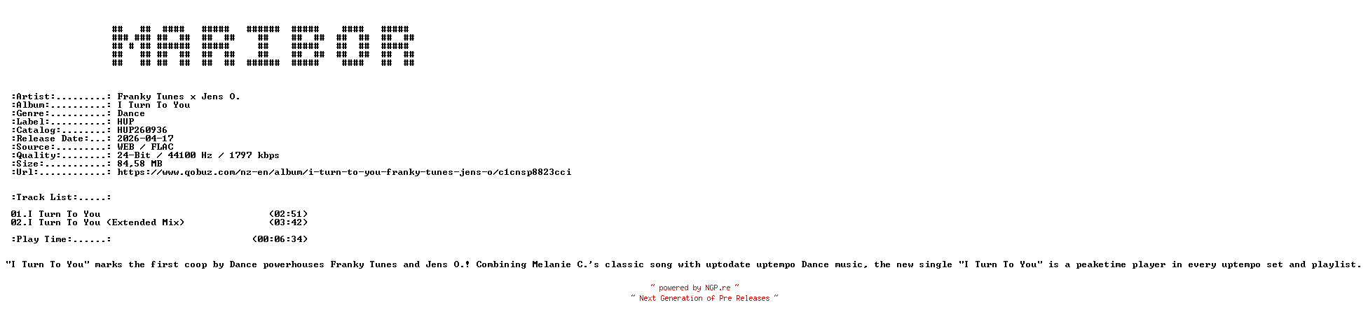 Titel: Franky_Tunes_x_Jens_O -I_Turn_To_You-(HUP260936)-24BIT-WEB-FLAC