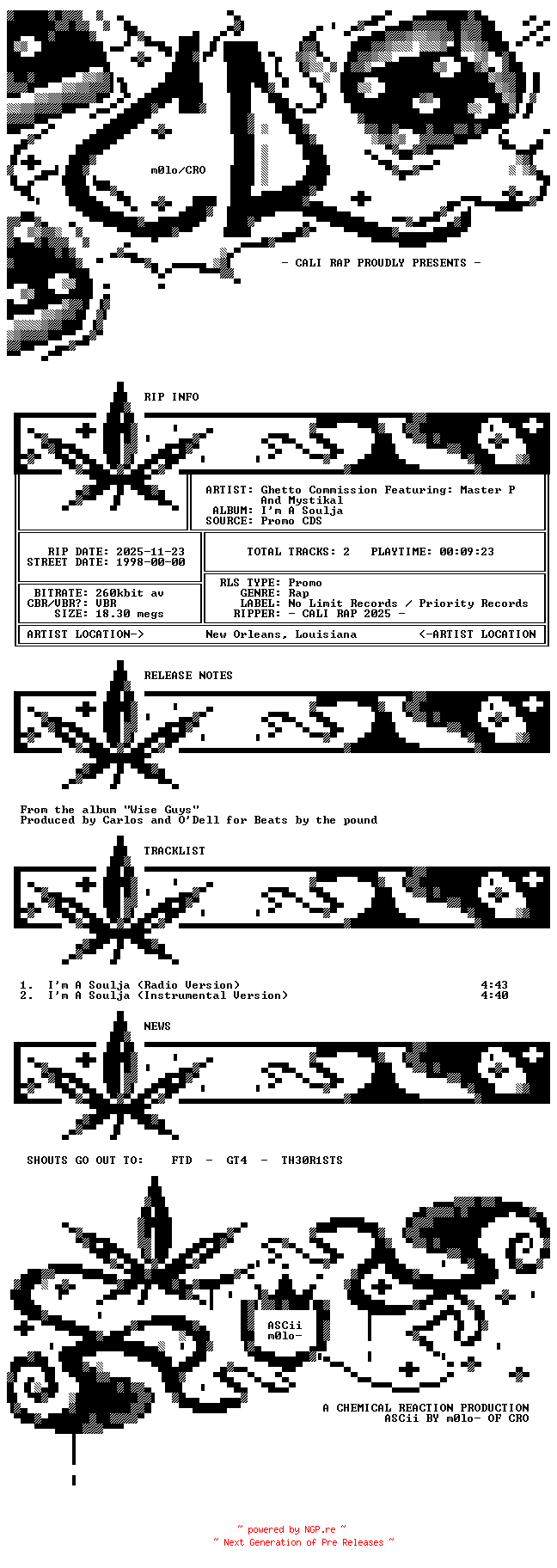 Titel: Ghetto_Commission_Featuring_Master_P_And_Mystikal-Im_A_Soulja-Promo-CDS-1998-CR_INT