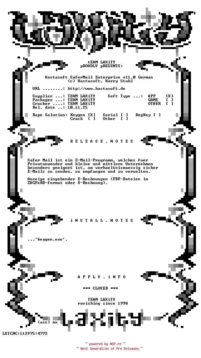 Hastasoft.SaferMail.Enterprise.v11.0.German.incl.Keygen-LAXiTY