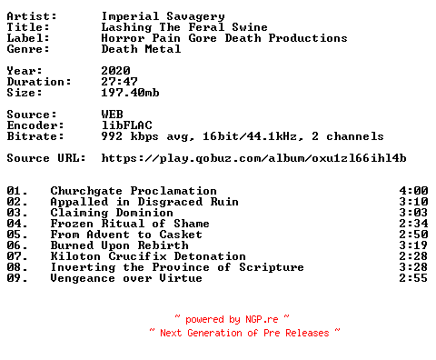 Titel: Imperial_Savagery-Lashing_The_Feral_Swine-16BIT-WEB-FLAC