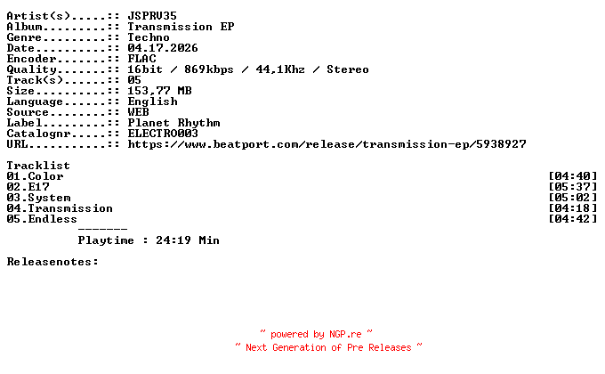Titel: JSPRV35-Transmission_EP-ELECTRO003-16BIT-WEB-FLAC