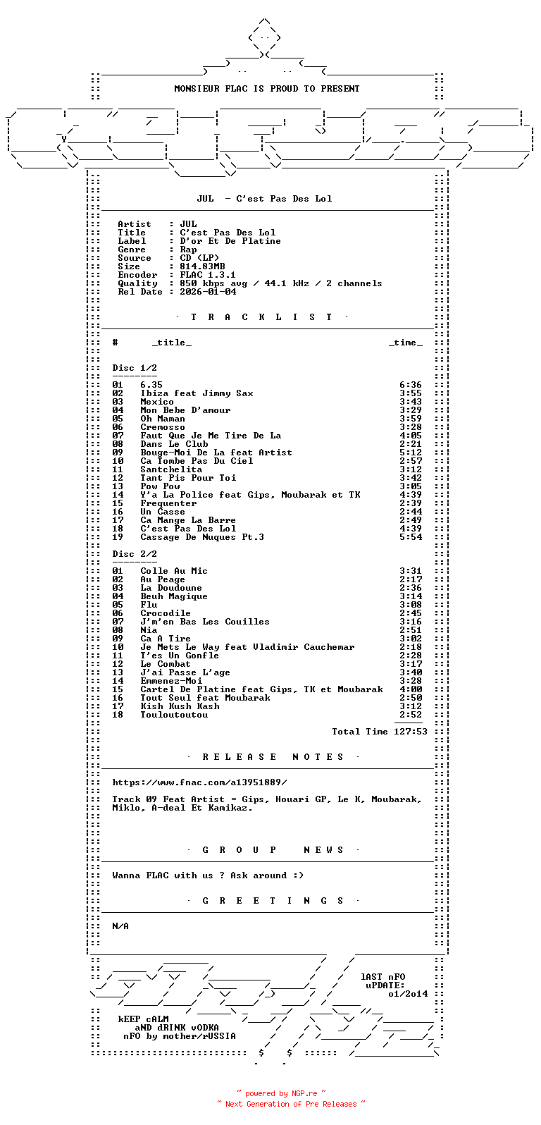 Titel: JUL-Cest_Pas_Des_Lol-FR-2CD-FLAC