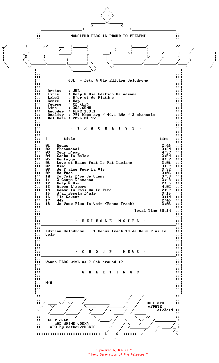 Titel: JUL-Detp_A_Vie_Edition_Velodrome-FR-CD-FLAC