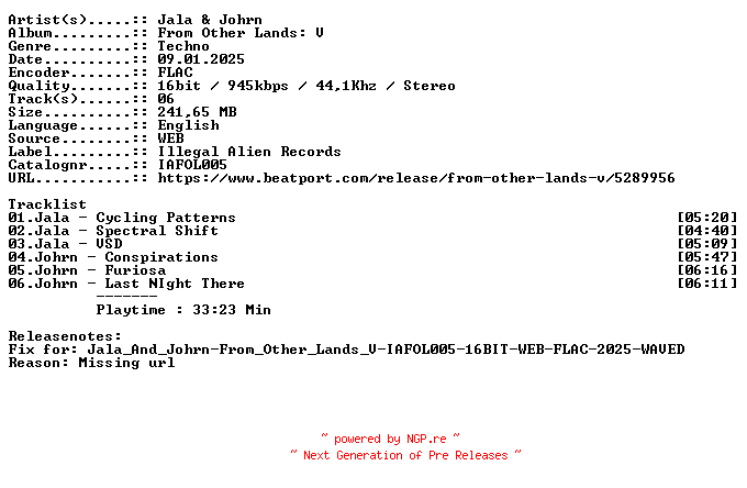 Titel: Jala_And_Johrn-From_Other_Lands_V-IAFOL005-NFOFIX-16BIT-WEB-FLAC