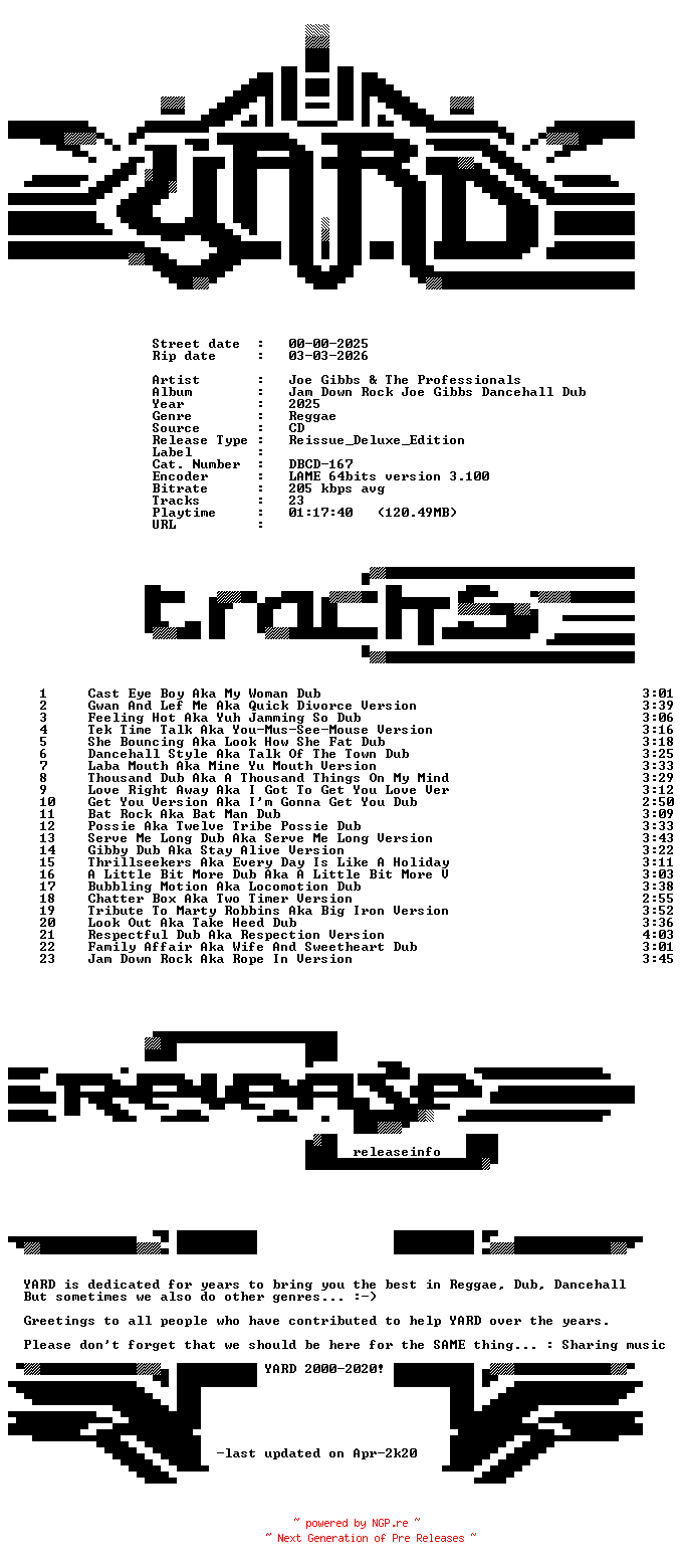 Titel: Joe_Gibbs_and_The_Professionals-Jam_Down_Rock_Joe_Gibbs_Dancehall_Dub-(DBCD-167)-REISSUE_DELUXE_EDITION-CD