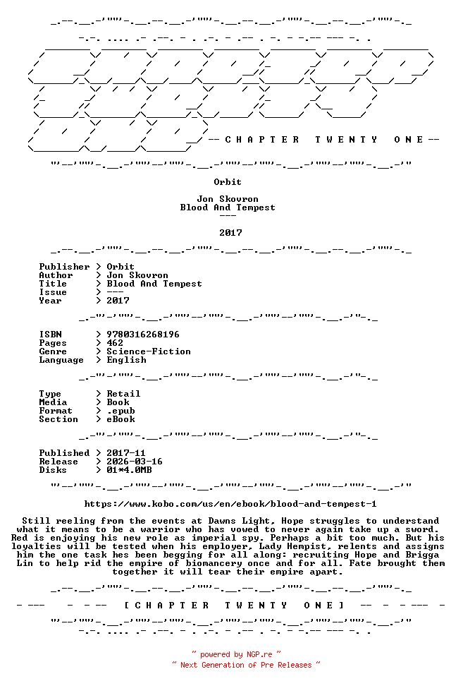 Jon.Skovron.-.Blood.And.Tempest.2017.RETAIL.EPUB.eBook-CTO