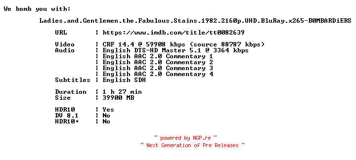 Titel: Ladies and Gentlemen the Fabulous Stains 1982 2160p UHD BluRay x265-B0MBARDiERS