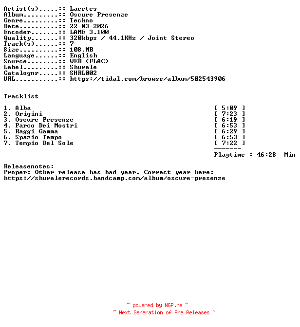 Titel: Laertes-Oscure_Presenze-SHRL002-PROPER-WEB