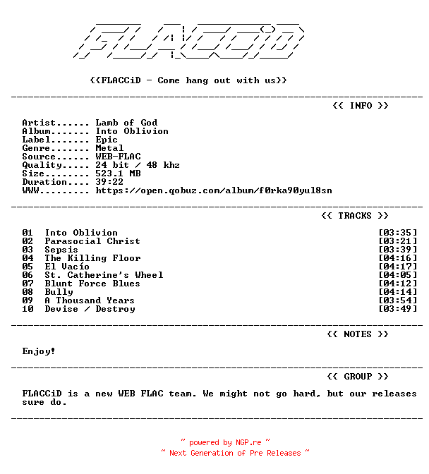 Titel: Lamb_of_God-Into_Oblivion-24BIT-48KHZ-WEB-FLAC