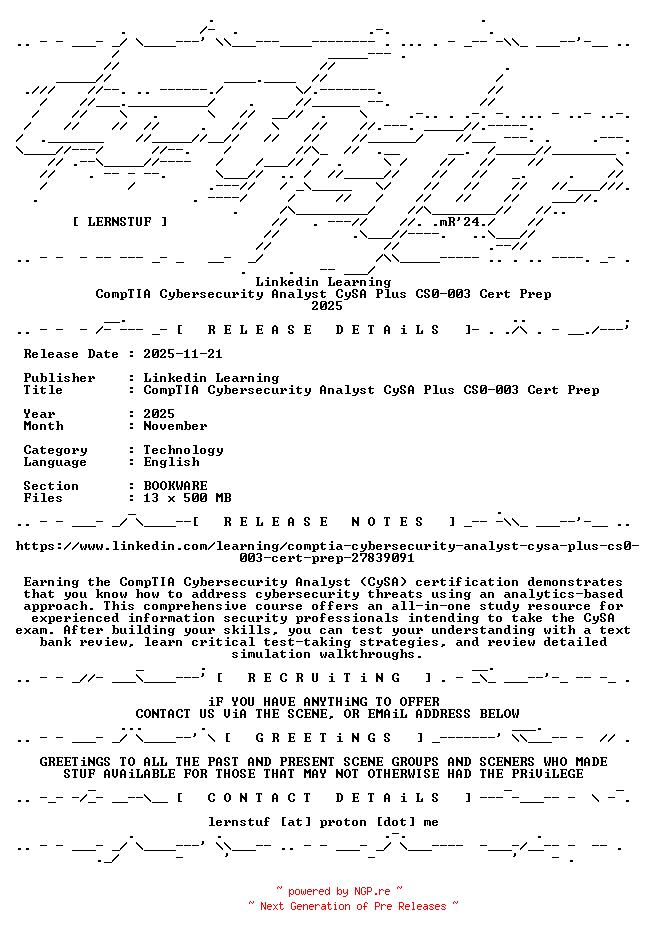 Linkedin.Learning.-.CompTIA.Cybersecurity.Analyst.CySA.Plus.CS0-003.Cert.Prep.2025.BOOKWARE-LERNSTUF