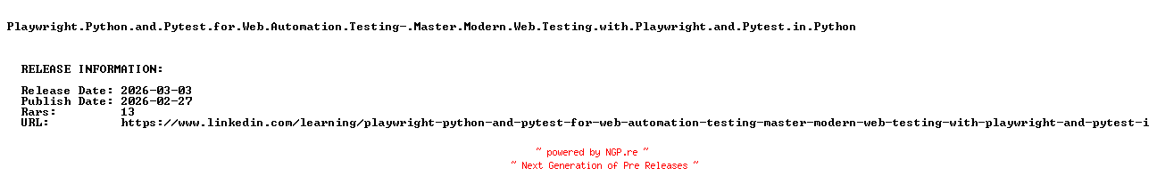 Linkedin.Learning.Playwright.Python.And.Pytest.For.Web.Automation.Testing-Master.Modern.Web.Testing.With.Playwright.And.Pytest.In.Python.BOOKWARE-SCHOLASTiC