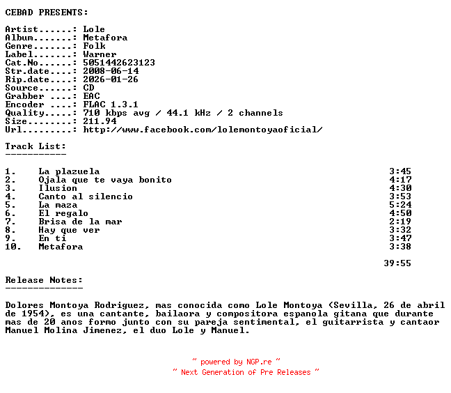 Lole-Metafora-(5051442623123)-ES-CD-FLAC-2008-CEBAD