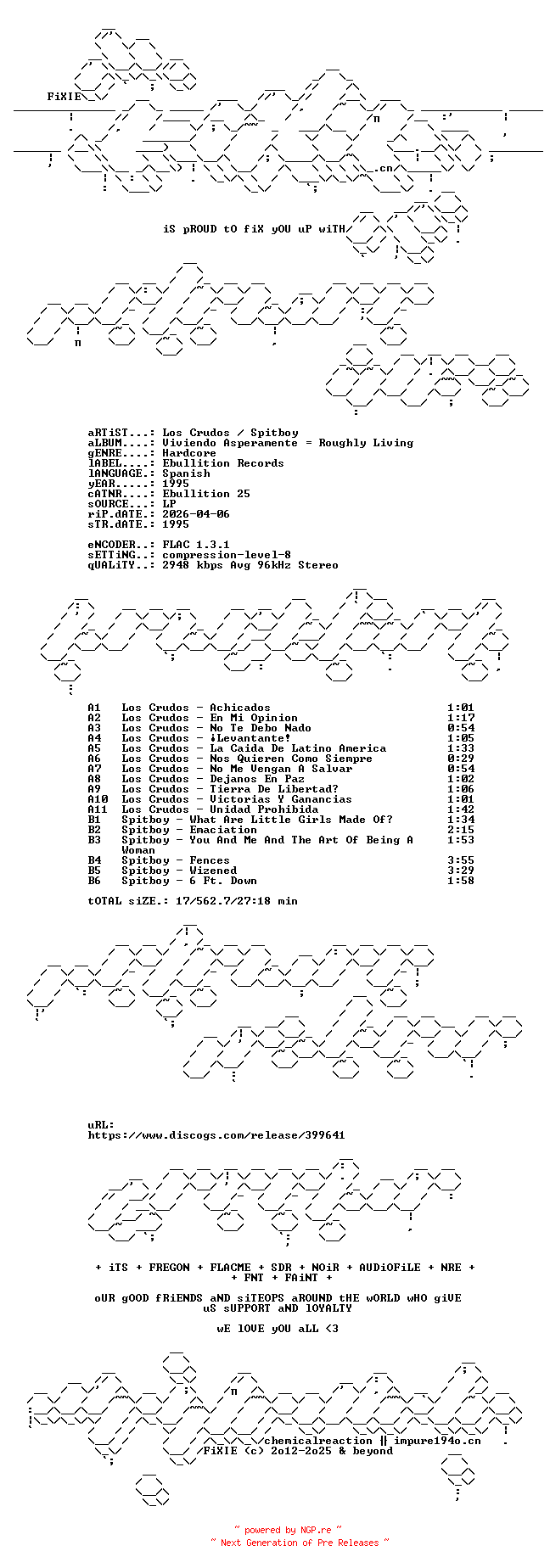 Titel: Los_Crudos_And_Spitboy-Viviendo_Asperamente_Roughly_Living-ES-SPLIT-LP-FLAC-1995-FIXIE