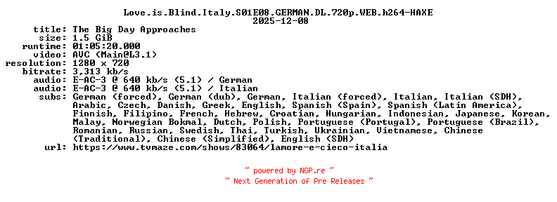 81653007 | TV-HD-X264 | HAXE | Reality-TV/Romance | 08.12.2025 09:48