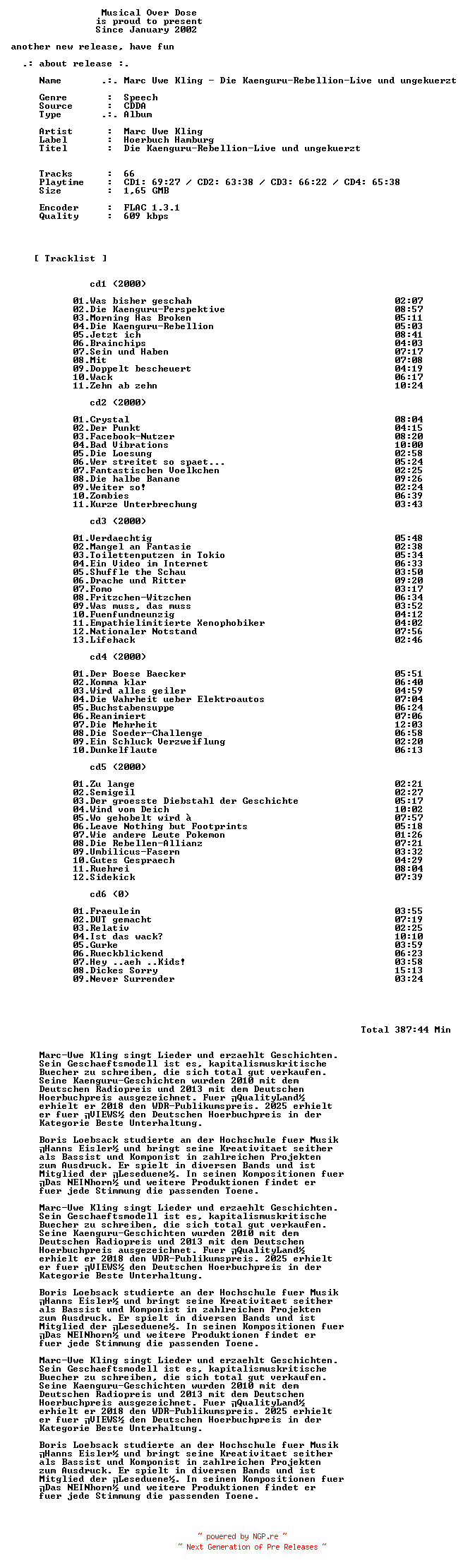 Titel: Marc-Uwe_Kling-Die_Kaenguru-Rebellion-Live_Und_Ungekuerzt-DE-Audiobook-6CD-FLAC