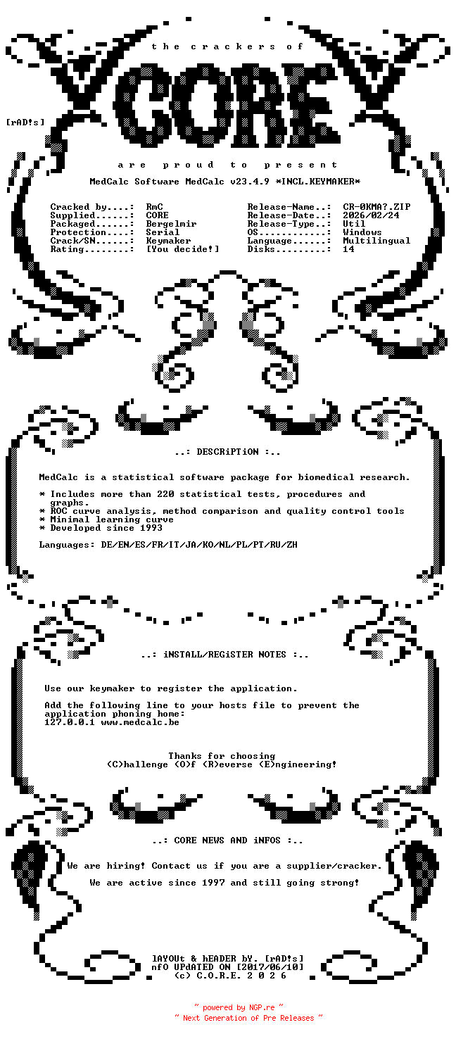 MedCalc.Software.MedCalc.v23.4.9.Multilingual.Incl.Keymaker-CORE