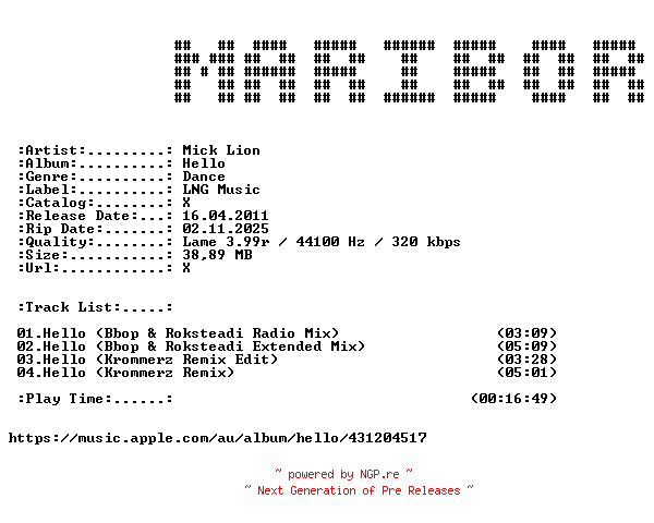 Titel: Mick_Lion_-_Hello-WEB