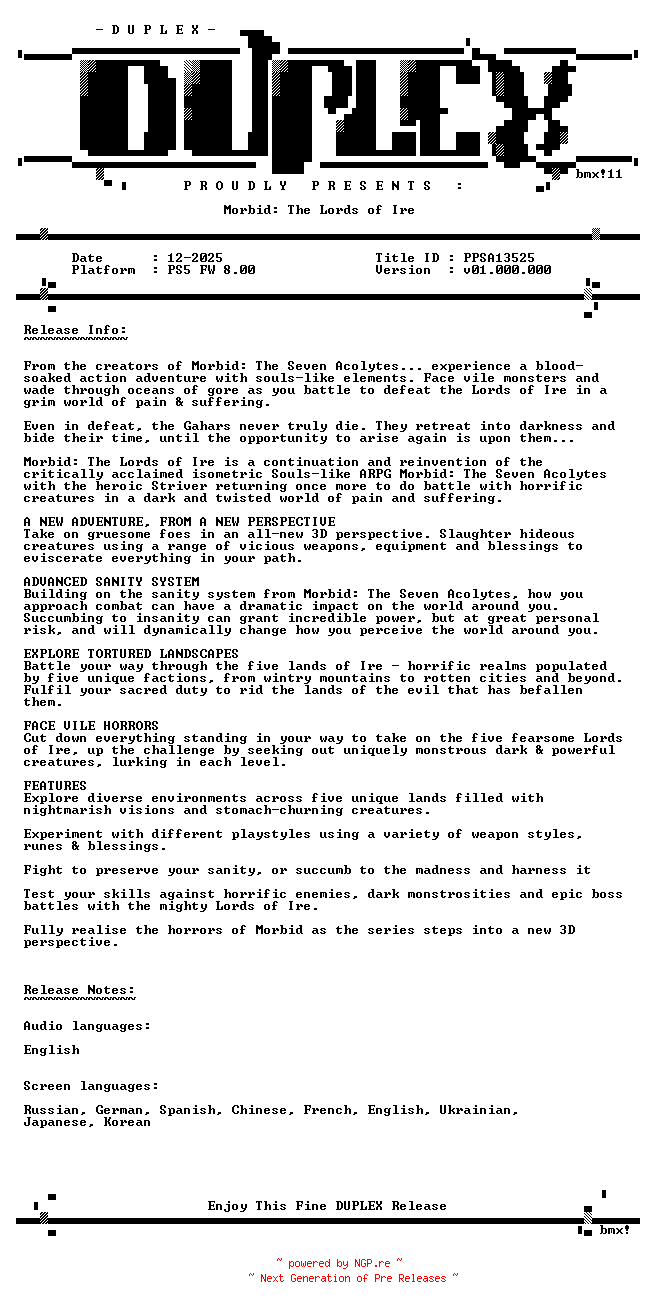Titel: Morbid The Lords of Ire PS5-DUPLEX