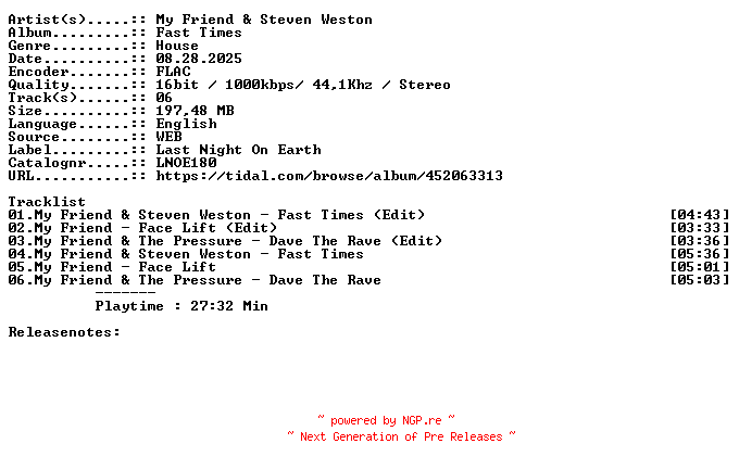 Titel: My_Friend_And_Steven_Weston-Fast_Times-LNOE180-16BIT-WEB-FLAC