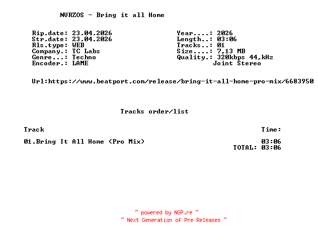 Titel: NVRZOS_-_Bring_It_All_Home-(TCLABSPRO192)-SINGLE-WEB