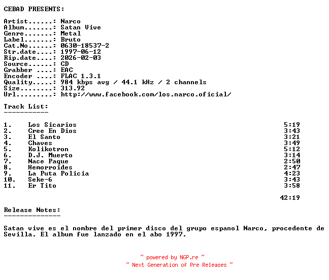 Titel: Narco-Satan_Vive-(0630-18537-2)-ES-CD-FLAC-1997-CEBAD