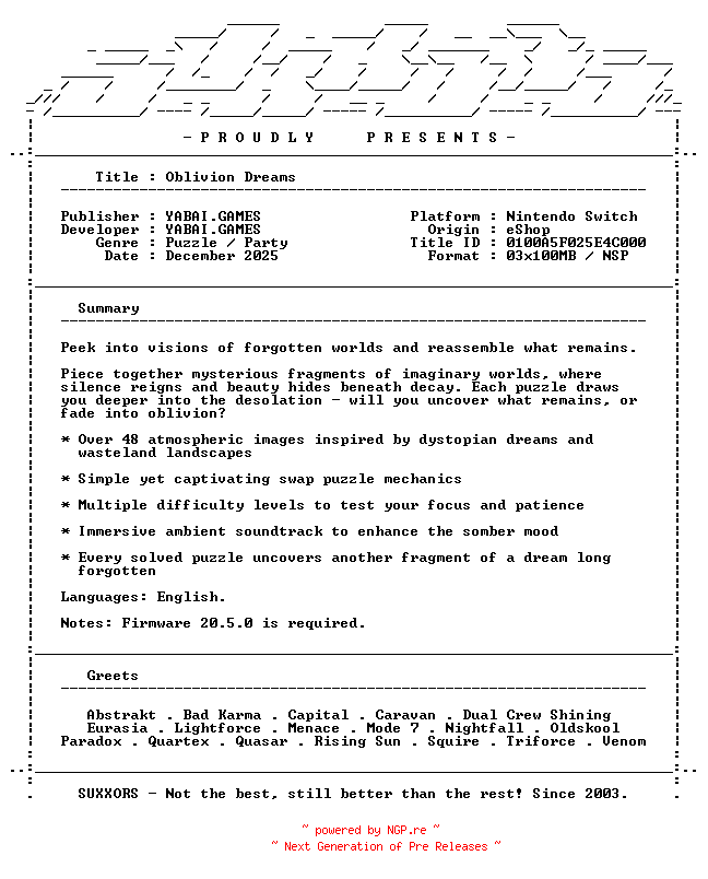Titel: Oblivion_Dreams_NSW-SUXXORS