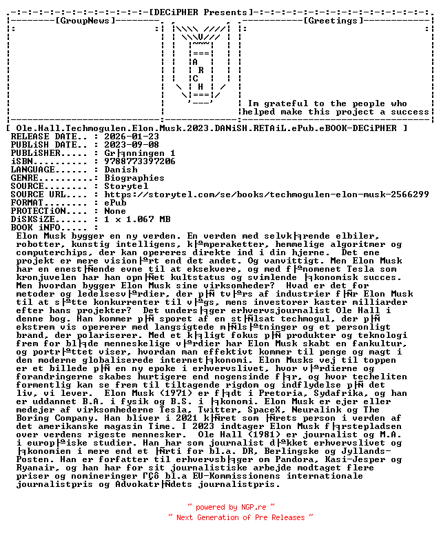 Ole.Hall.Techmogulen.Elon.Musk.2023.DANiSH.RETAiL.ePub.eBOOK-DECiPHER
