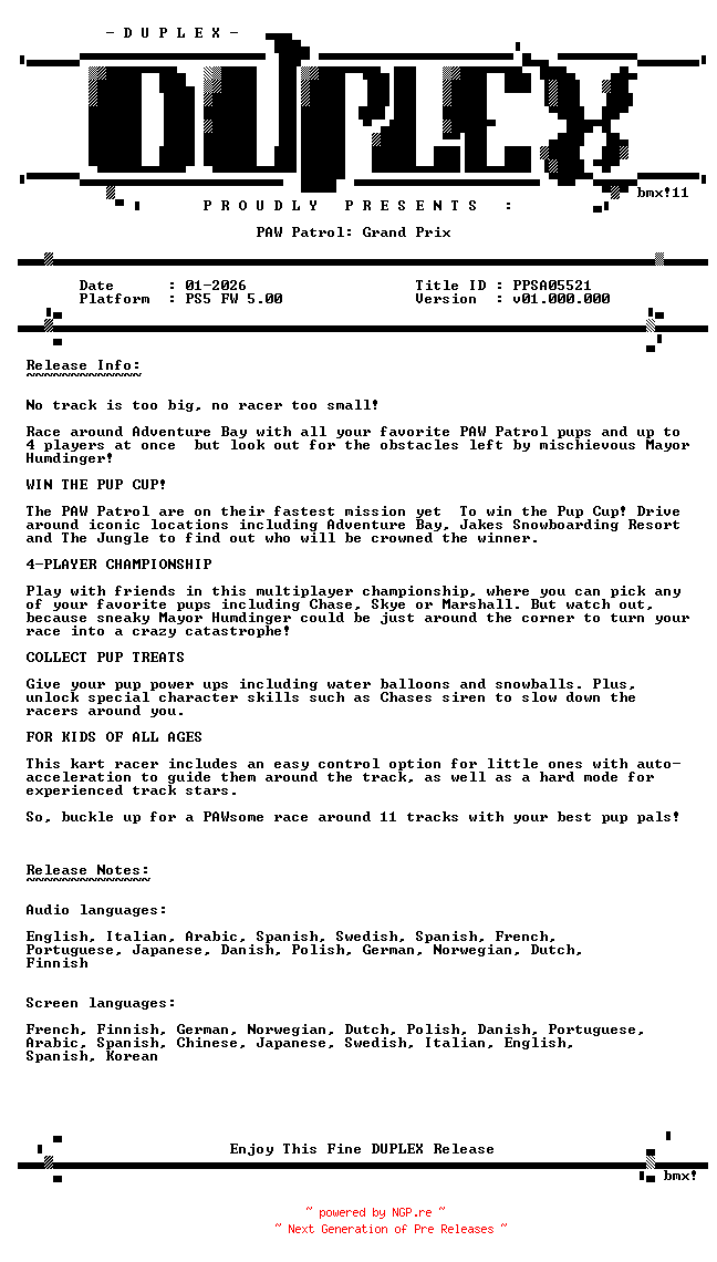 Titel: PAW Patrol Grand Prix PS5-DUPLEX