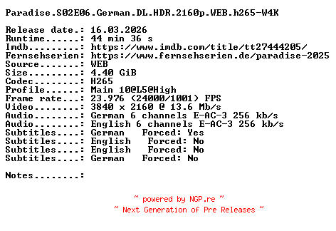 88277245 | TV-HDRIP | W4K | Action/Drama/Thriller | 16.03.2026 11:58