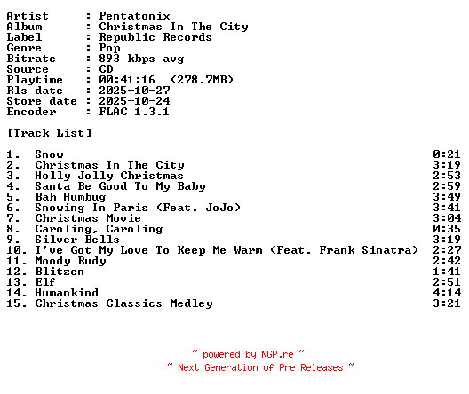 Titel: Pentatonix-Christmas_In_The_City-CD-FLAC