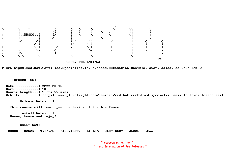 Titel: PluralSight Red Hat Certified Specialist In Advanced Automation Ansible Tower Basics Bookware-KNiSO
