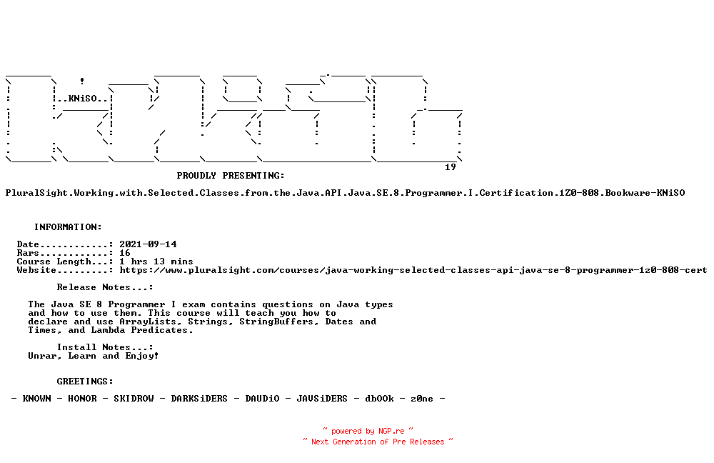 PluralSight.Working.with.Selected.Classes.from.the.Java.API.Java.SE.8.Programmer.I.Certification.1Z0-808.Bookware-KNiSO
