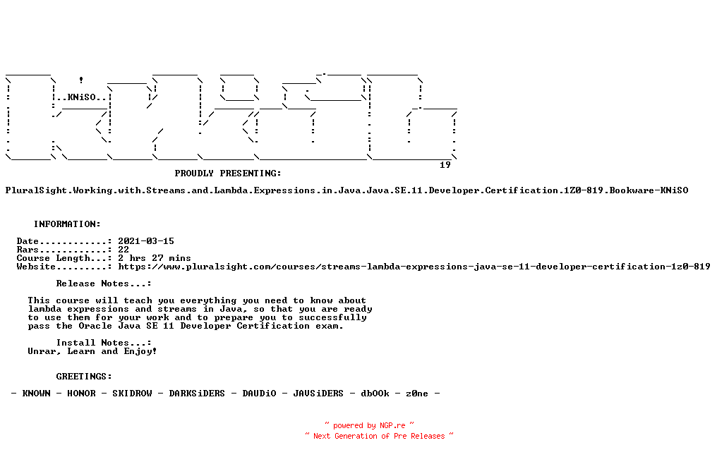PluralSight.Working.with.Streams.and.Lambda.Expressions.in.Java.Java.SE.11.Developer.Certification.1Z0-819.Bookware-KNiSO