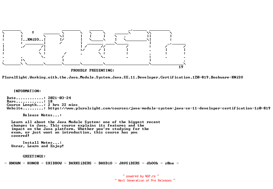 PluralSight.Working.with.the.Java.Module.System.Java.SE.11.Developer.Certification.1Z0-819.Bookware-KNiSO