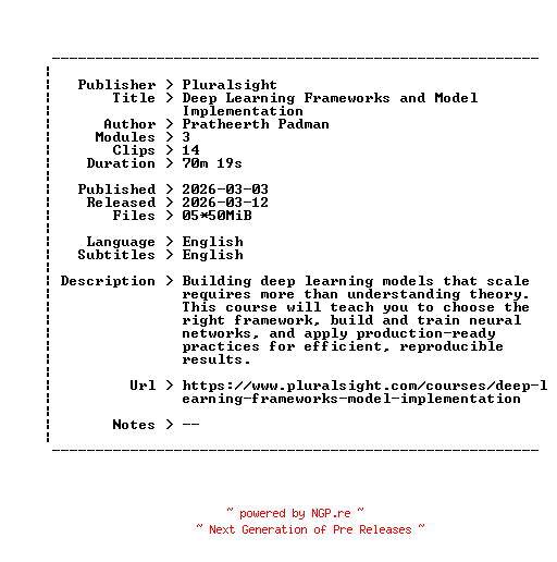 Pluralsight.Deep.Learning.Frameworks.and.Model.Implementation.2026.BOOKWARE-GETH