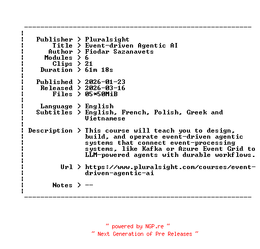 Pluralsight.Event-driven.Agentic.AI.2026.BOOKWARE-GETH