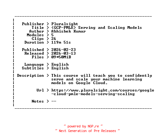 Pluralsight.GCP-PMLE.Serving.and.Scaling.Models.2026.BOOKWARE-GETH