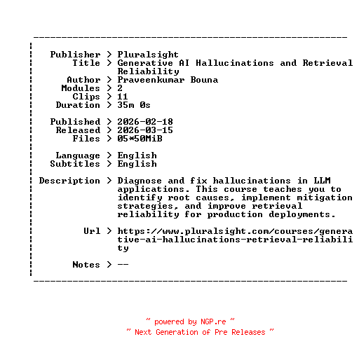Pluralsight.Generative.AI.Hallucinations.and.Retrieval.Reliability.2026.BOOKWARE-GETH