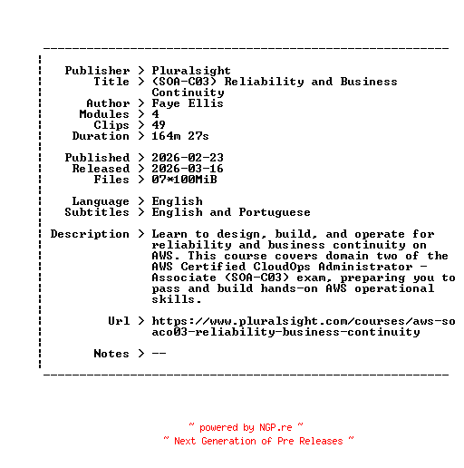 Pluralsight.SOA-C03.Reliability.and.Business.Continuity.2026.BOOKWARE-GETH
