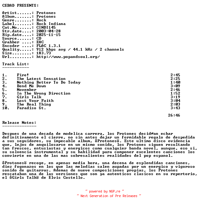 Titel: Protones-Protones-(CINDI145)-CD-FLAC