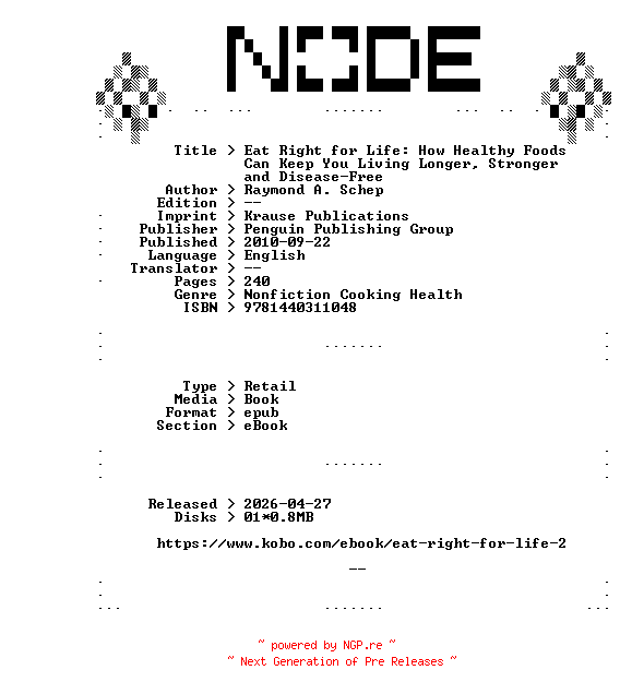 Raymond.A.Schep.Eat.Right.for.Life.How.Healthy.Foods.Can.Keep.You.Living.Longer.Stronger.and.Disease-Free.2010.RETAiL.EPUB.eBook-NODE