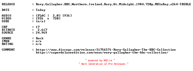 Titel: Rory Gallagher BBC Northern Ireland Rory At Midnight 1984 720p MBluRay x264-TREBLE