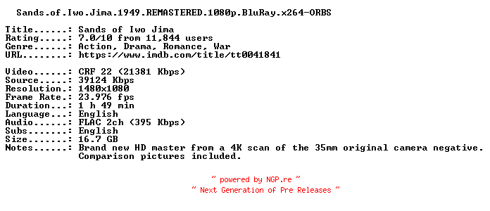 Titel: Sands of Iwo Jima 1949 REMASTERED 1080p BluRay x264-ORBS