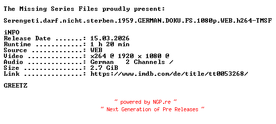 Titel: Serengeti darf nicht sterben 1959